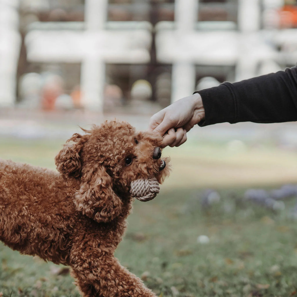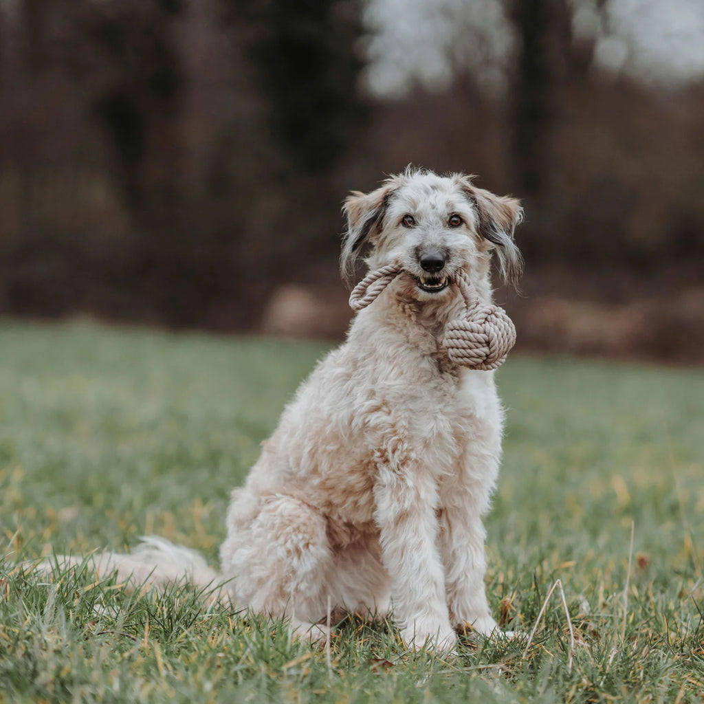 Does your four-legged friend love fetch or tug-of-war games? Then the Inari sling ball will be a hit! The "projectile" is made of 100% cotton, offers a playful gum massage thanks to the rope material and natural texture, and can help clean the teeth. For both humans and dogs, this classically designed toy offers almost endless possibilities for active play and species-appropriate activities. Thanks to the practical handle, it can be thrown very far with little effort, and then happily retrieved by the dog. Inari is also ideal for a carefree test of strength in the form of a tug-of-war game, and if you prefer a quieter, more focused activity for your four-legged friend, the carefully woven ball can be hidden in your home or while out for a walk.