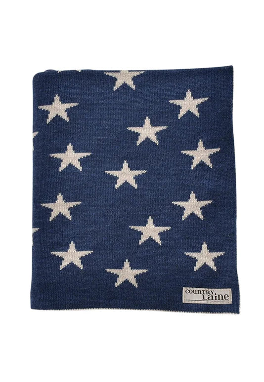 100% Merino Star Blanket - Dark Indigo/Linen