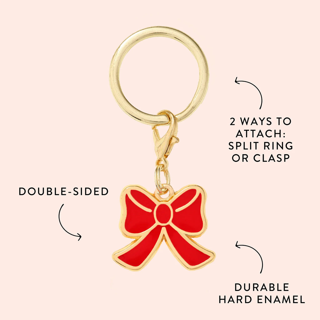 'Tis the season! Celebrate the holidays with a "charm"-ing collar accessory. Double-sided and made of durable enamel, this bright red bow is the perfect festive accessory.