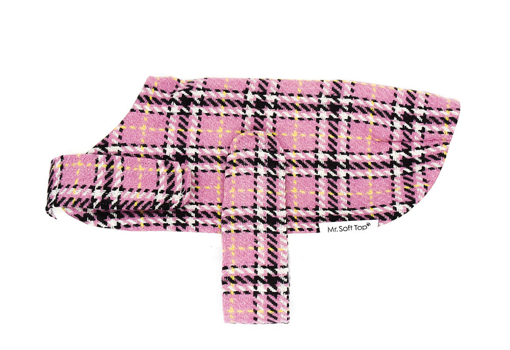 Pink Houndstooth Walking Coat (Lined) with Collar