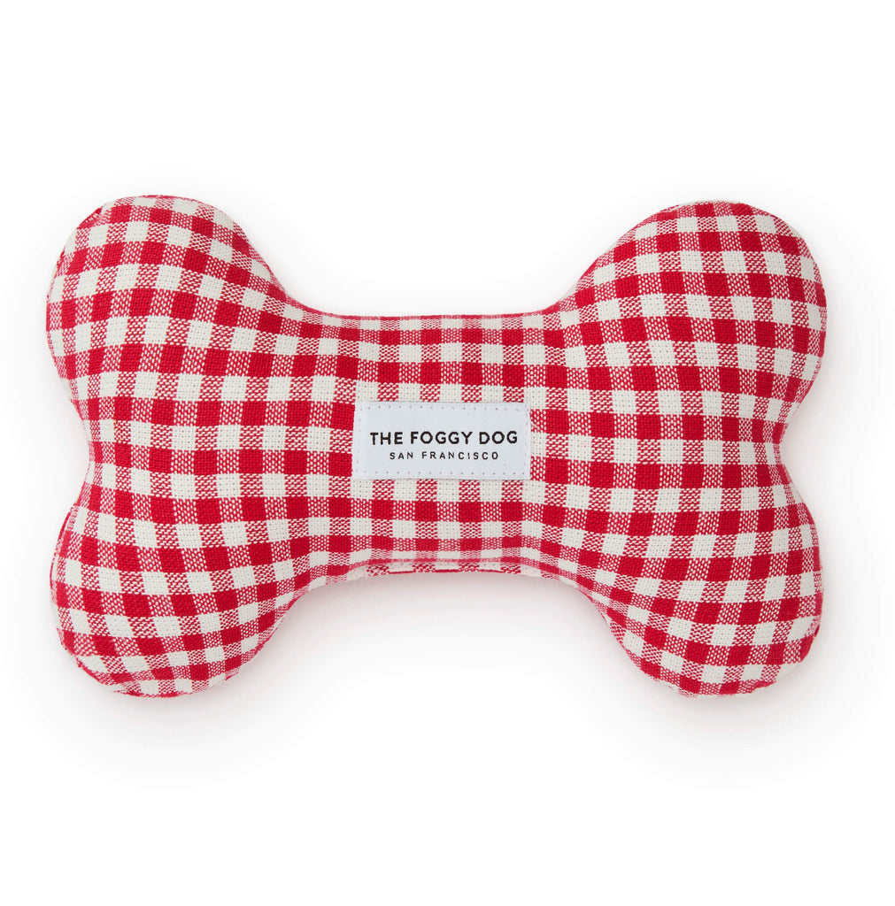 Red Gingham Squeaky Bone Dog Toy