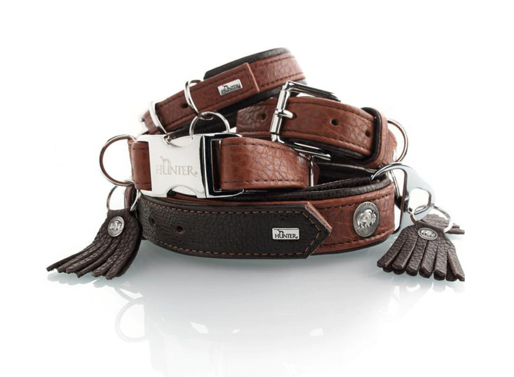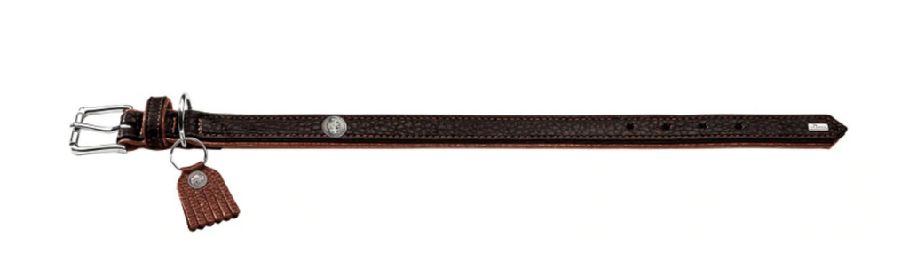These stylish collars are made of an exclusive rare bison leather which is extremely high-quality and is known for its rustic natural appearance and suppleness.