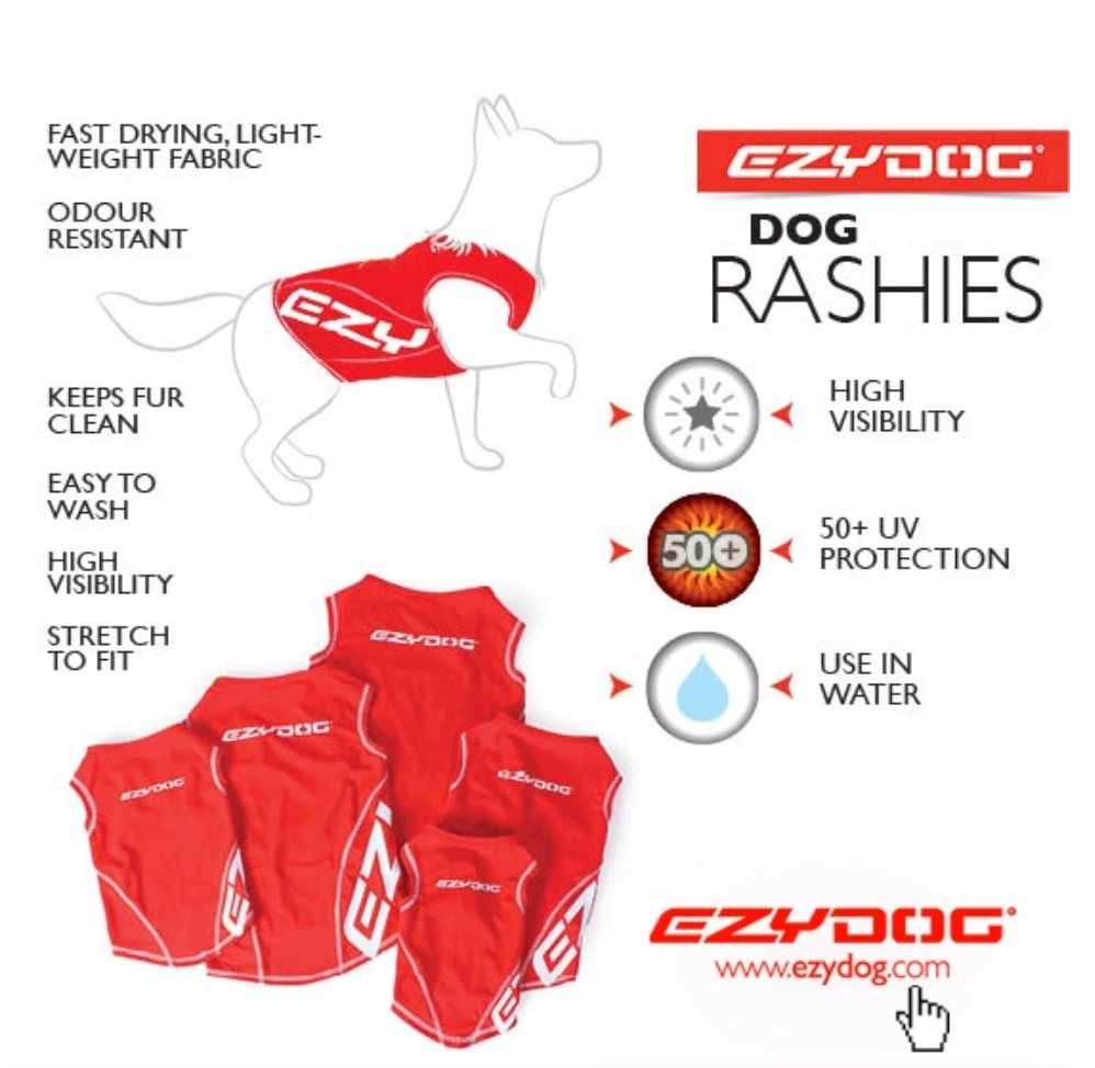 Keep your fun-loving pooch protected from the heat and harmful UV rays with the EzyDog Dog Rashie Vest. This dog rash guard is a protective shirt originally worn by surfers as protection against sunburn and heat rash while in the water. Now your dog can conquer the waves with the EzyDog Rashie Vest.